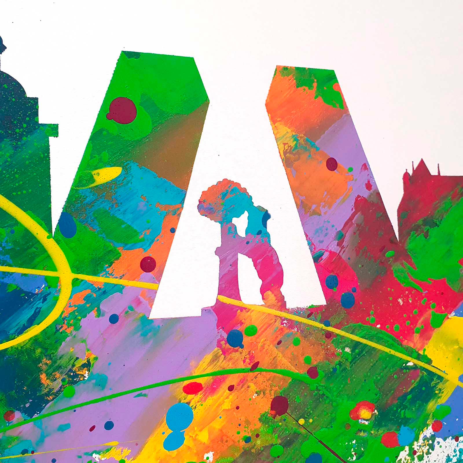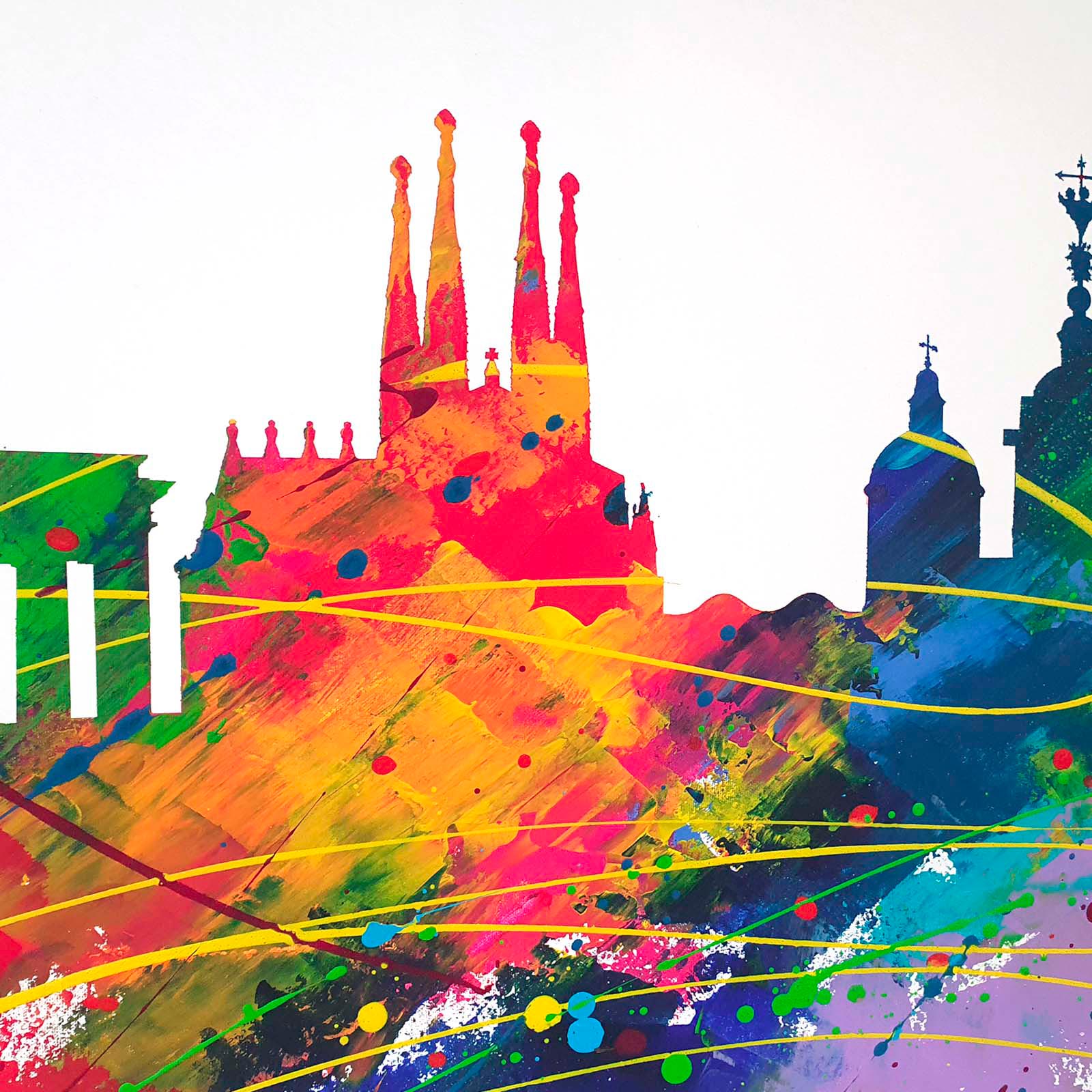 Sehenswürdigkeiten von Lieblingsstädten in Acryl auf Leinwand.